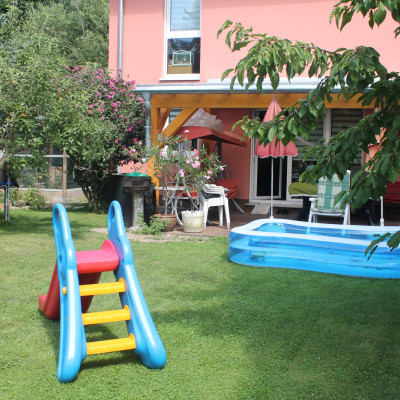Meine Tagespflegestelle findet in unserem eigenen Haus mit angrenzendem Bungalow und großen Garten statt.